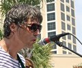Derek Brown (front) and Michael Ivins (back) of the Flaming Lips perform with Josh Carter (middle) of Phantogram.