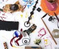 Tyler Tadlock's project was a sound experiment in which he recorded sounds with eight different people using eight different microphones. He displayed his project by placing eight speakers in a circle. Visitors were invited in the center to experience the surrounding sounds.