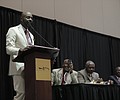 President of Mississippi Valley State University William Bynum Jr., honors former San Francisco 49ers receiver Jerry Rice as a university alumni at the Jackson Convention Center on Sept. 30, 2016.