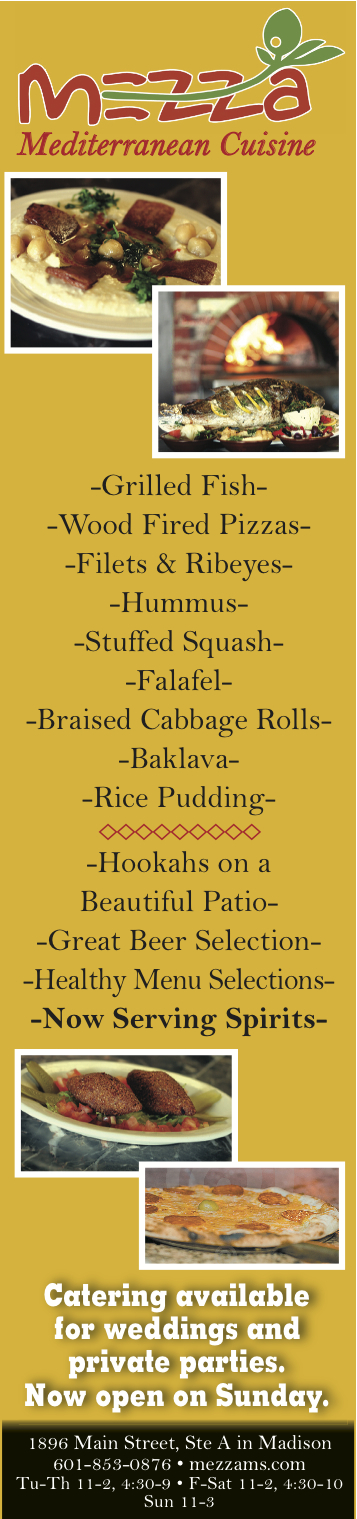 Mediterranean cuisine and wood fired brick oven pizzas. Come experience the beautiful patio, Hookahs, and delicious food. Beer is offered and you are welcome to bring your own wine.